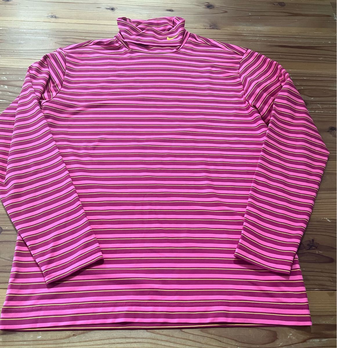 - 送料込み!!NIKE GOLF ハイネック 長袖Tシャツ ナイキゴルフ ボーダー ピンク系 175_95A GOLF ゴルフウェアー