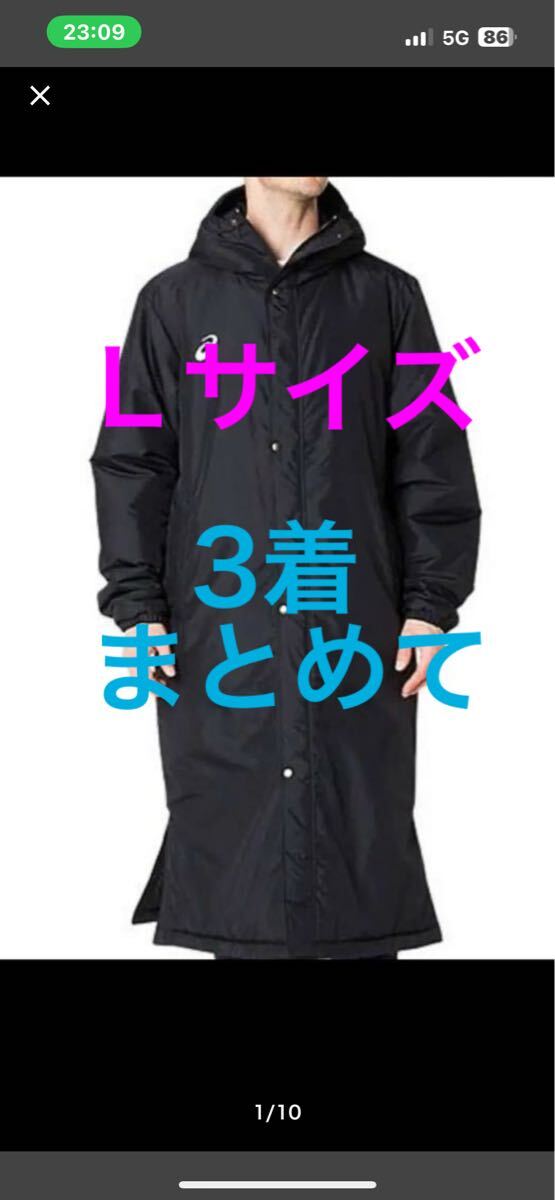 > 3着まとめ売り!大幅値下げ! 仕入れにも!送料無料! ベンチコート黒色Lサイズ男女兼用 ASICS SAVAS