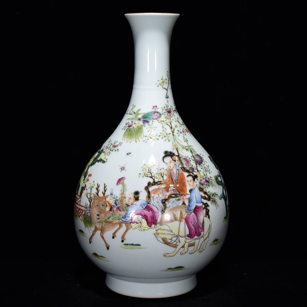 - LH116■中国古玩 唐物 清乾隆年製 款 粉彩麻姑献寿紋玉壺春瓶 時代物 極上品■