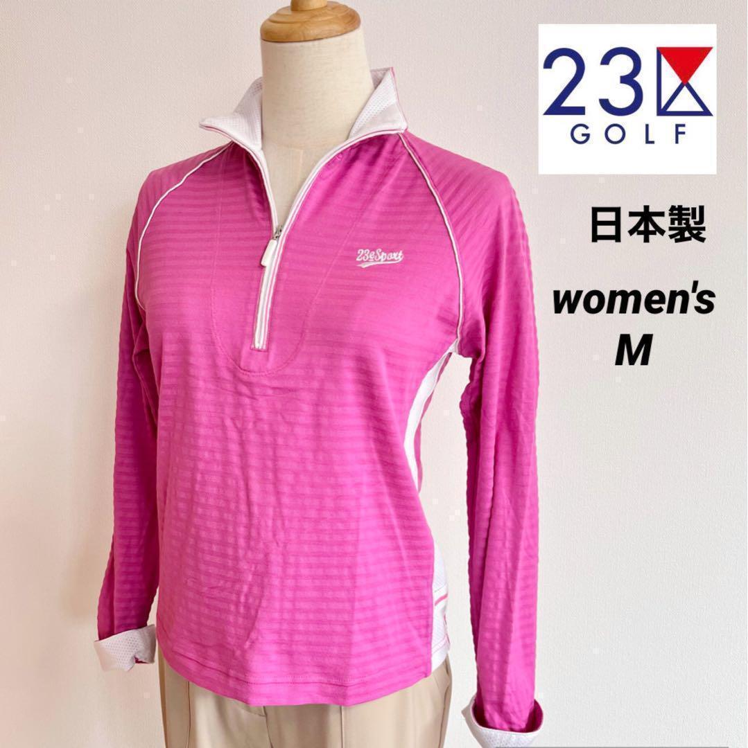 - 23区 ニジュウサンク 日本製 レディース ゴルフウェア 吸汗速乾 ハーフジップ 刺繍ロゴ 長袖シャツ ピンク M