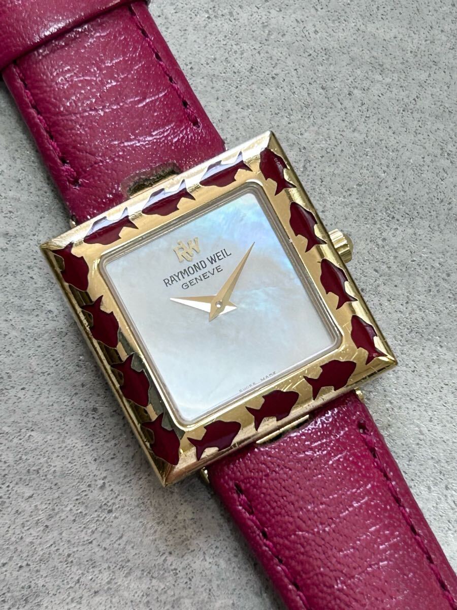 > RAYMOND WEIL レイモンドウィル 5855 クォーツ スクエア ゴールド シェル 魚 レディース腕時計 稼働中