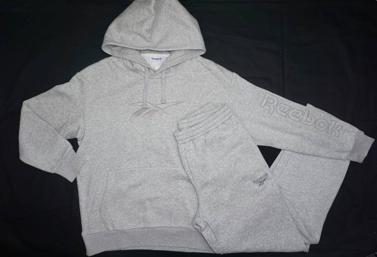 - リーボック 刺しゅうロゴ スウェットプルオーバーフーディー&パンツ Lサイズ 定価13178円 グレー メンズ 上下セット 裏フリース