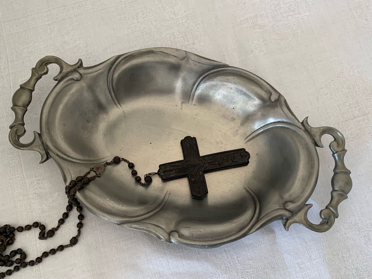 - ヨーロッパアンティーク ピューター製 プレート ブロカント