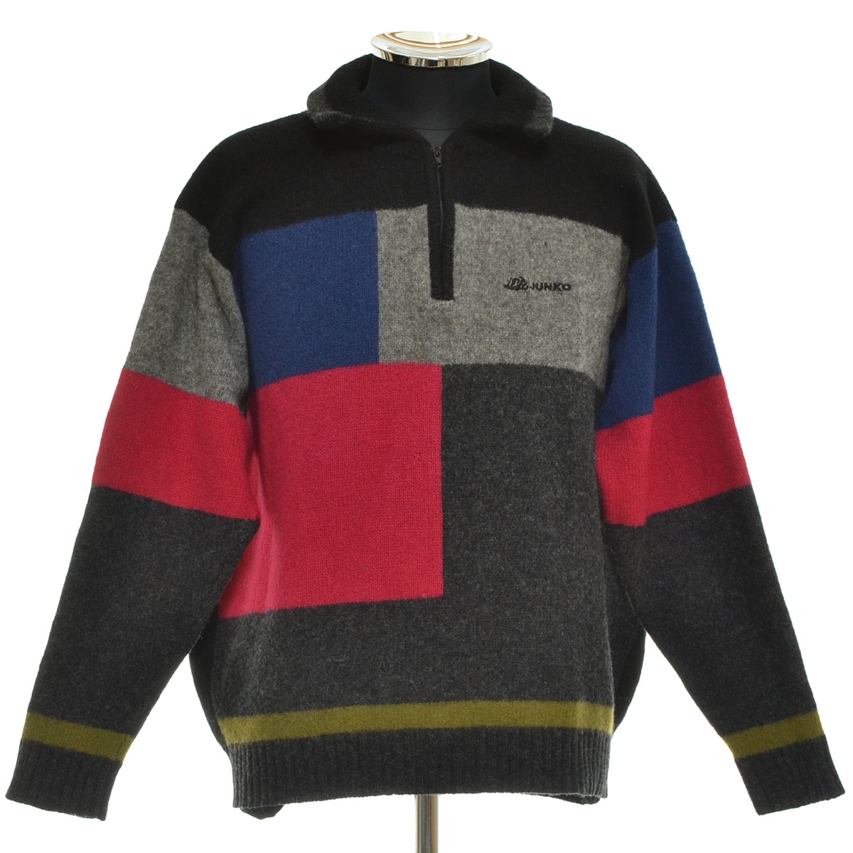 > ●547038 Mr.JUNKO ミスタージュンコ コシノ ●ハーフジップニット セーター オールド サイズL ウール100% メンズ グレー