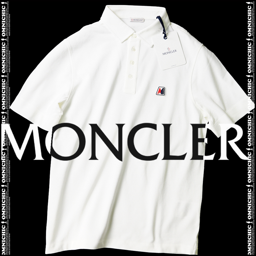 > 希少ラバースクエアロゴ■新品/国内正規品【MONCLER】モンクレール一味違うデザイン性/清潔感溢れるホワイト鹿の子ポロシャツS/白/半袖
