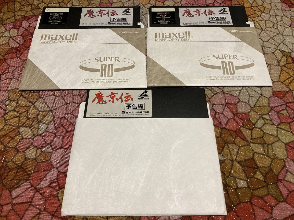 - レア 日本クリエイト 魔京伝 予告編 PC-9801版(5インチFD3枚 ブランクディスク2枚で予告と体験版を作成済み。起動確認済) 送料込み