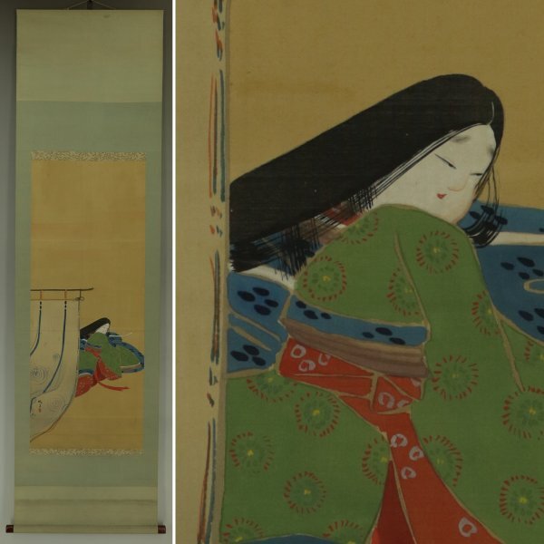 - 【模写】高倉楓亭【美人図】◆絹本◆合箱◆掛軸 s04079