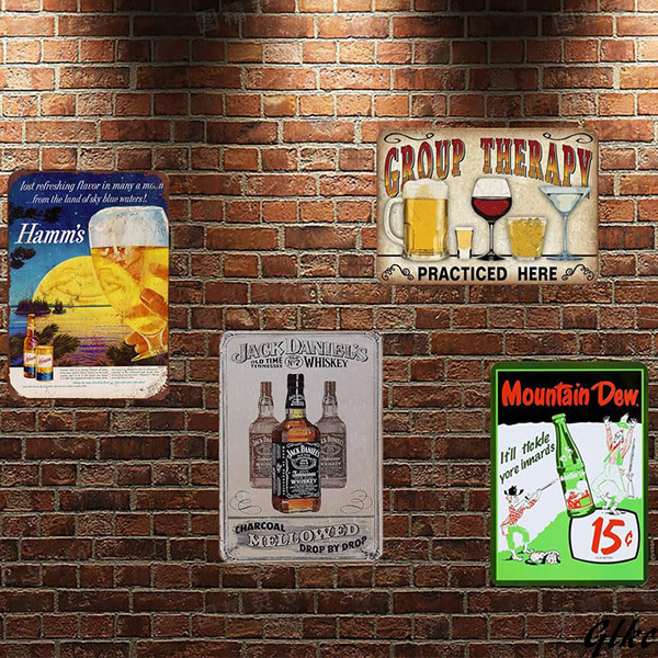 - 【ヴィンテージ風レトロ壁飾り4枚セット】 レトロ看板 アメリカンスタイル 20cm×30cm インテリア ディスプレイ カフェ ショップ