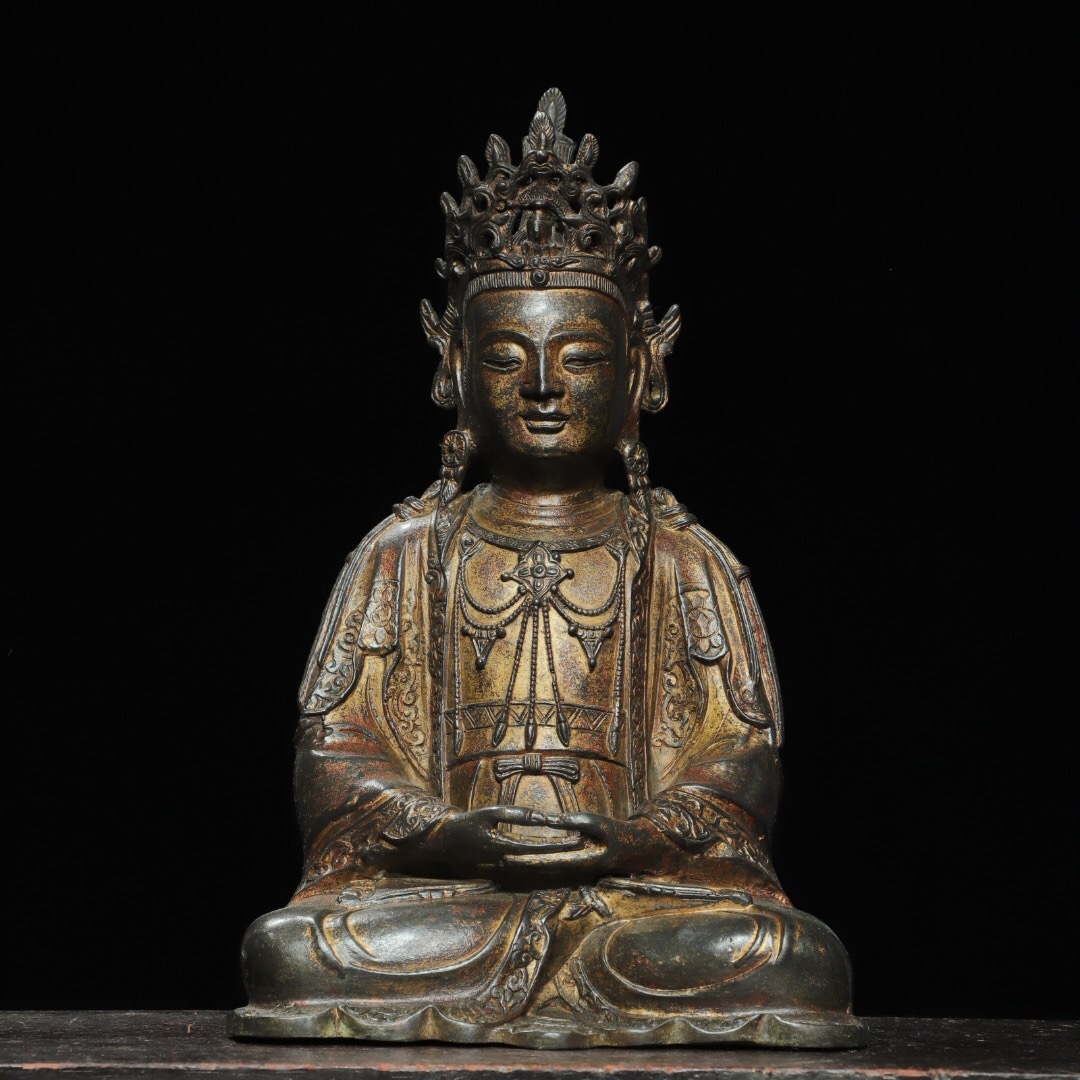 - ▽鴻▽ 銅製 泥金 觀音菩薩像 仏教古美術 供養品 古賞物 中国古玩 中国古美術