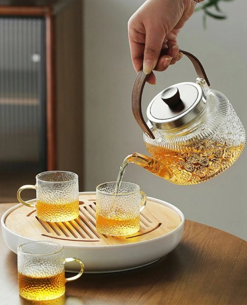 - ガラスティーポット 800ml ガラスケトル 耐熱 ガラス 湯沸かし 手作り おしゃれ ガラスポット 大容量 紅茶 急須 透明 茶芸 花海棠 母の日
