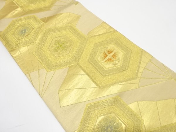 - ys7379738; 宗sou 扇面に重ね亀甲・花・向かい蝶模様織り出し袋帯(材料)【アンティーク】【着】
