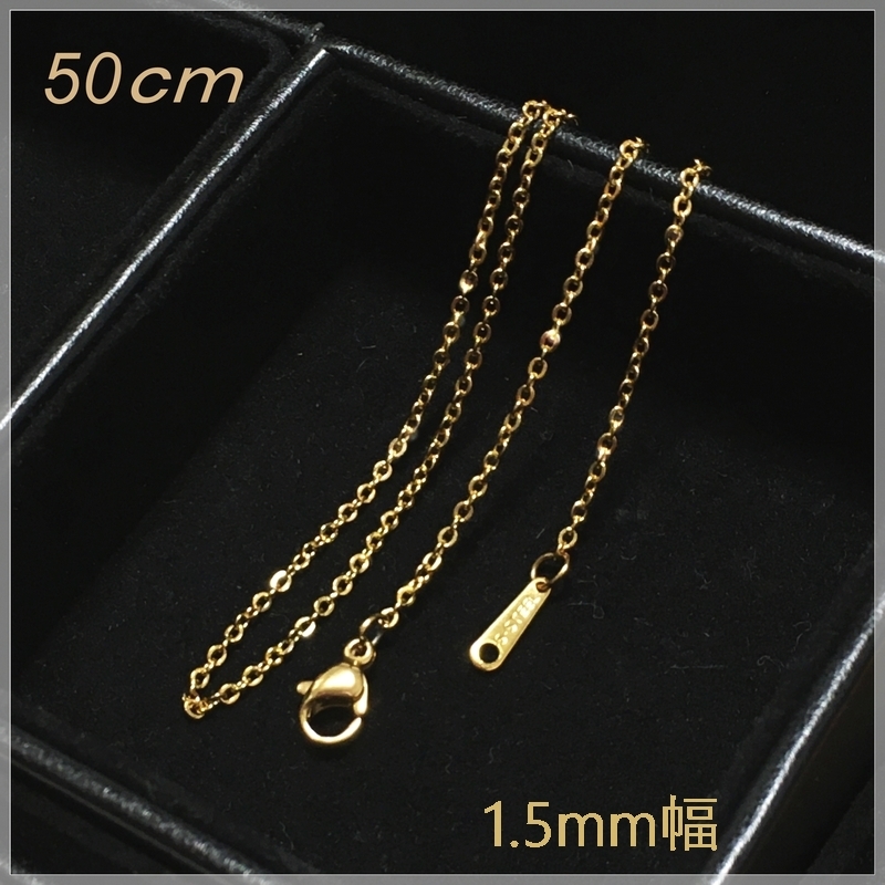 > N7342/50cm ステンレスチェーン 平あずき 金色 1.5mm幅 ゴールドカラー つけっぱなし ステンレス製ネックレス 45cm変更可 チェーンのみ