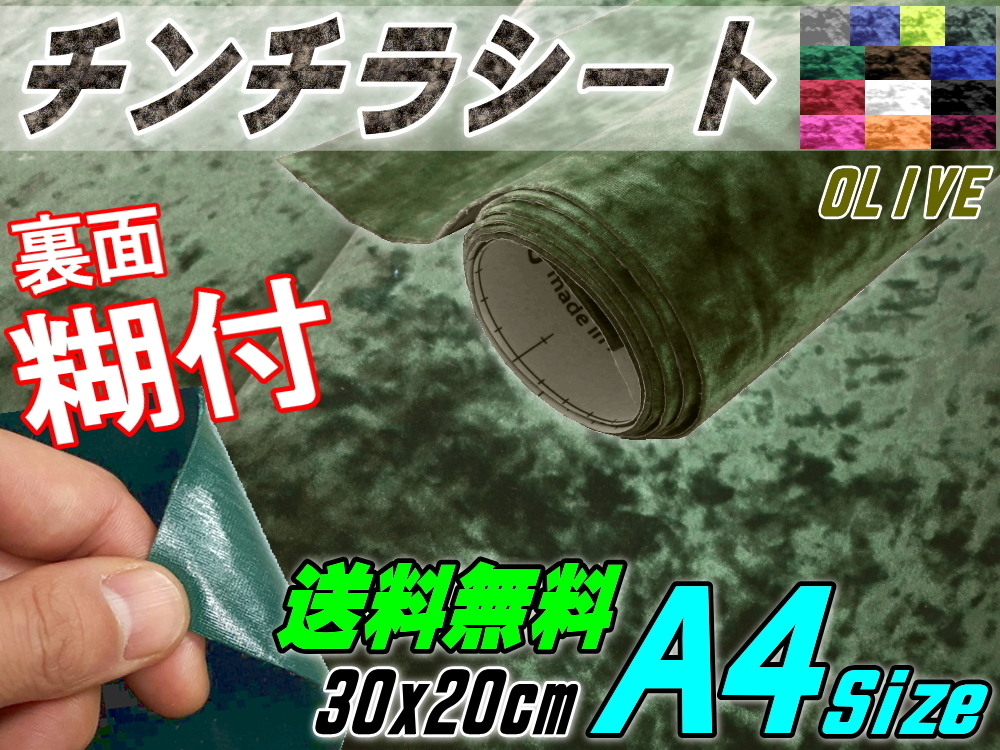 - チンチラ (A4) オリーブ 30×20cm裏面糊付きシート クラッシュベルベット生地ベロア椅子モケット張替えトラック内装デコトラ家具DIY補修 0