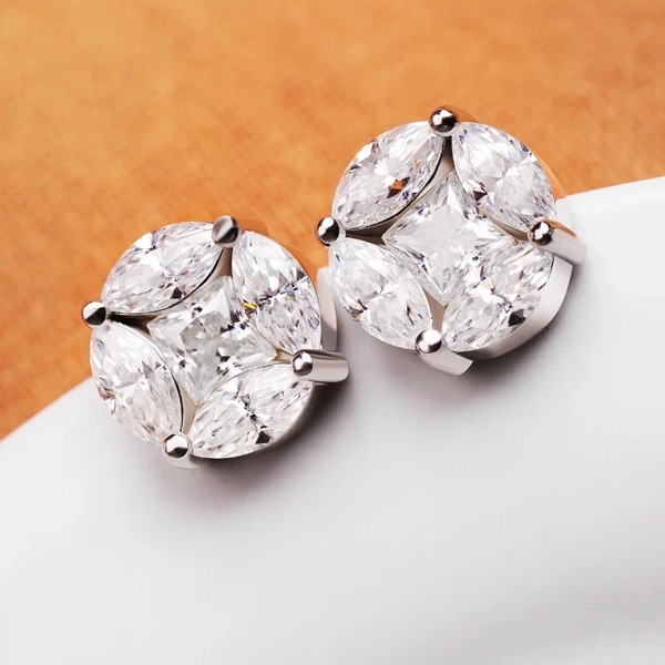 女性用証明書付きモアッサナイトスタッドピアス、925スターリングシルバー、プリンセスまたはマーキスカット、ダイヤモンドピアス、10mm