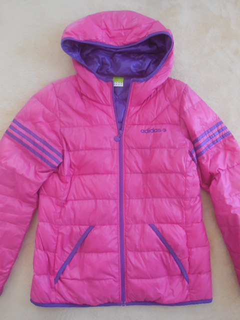 - →アディダス→ADIDAS→フード付ダウンジャンバー→ピンク×パープル→サイズレディースL→