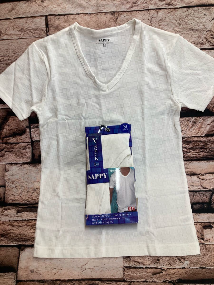 - 送料無料!洗練されたフォルムのメンズV首 立体モザイクチェック柄半袖シャツ【SAPPY】(ホワイトのM サイズ)1枚