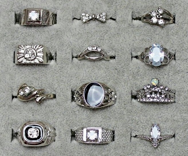 > Qa11-1[23] シルバーリング おまとめて12点セット 銀色指輪 レディースファッションリング アクセサリー ラインストーン 女性 TM-250420V2