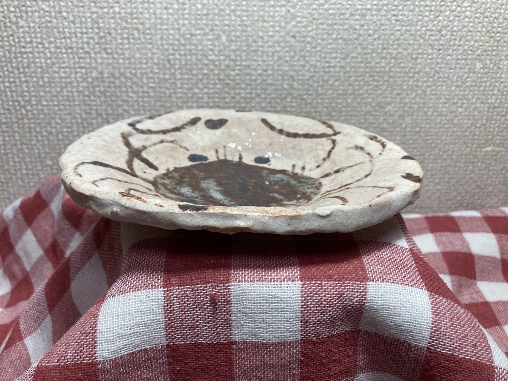 - 佐藤和次 魯山人 写し 蟹絵 皿 箱無 織部 早蕨窯 本物返品OK 250306ー13