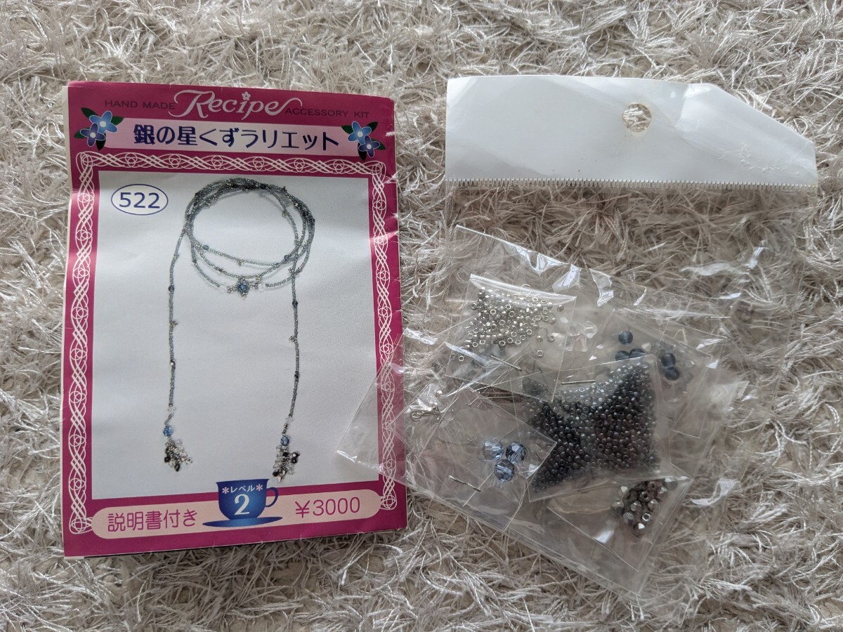 - 銀の星くずラリエット ビーズ キット 貴和製作所 レベル2説明書付き 3000円 涼しげシルバー&ブルー ロングネックレス 仕上がり122cm