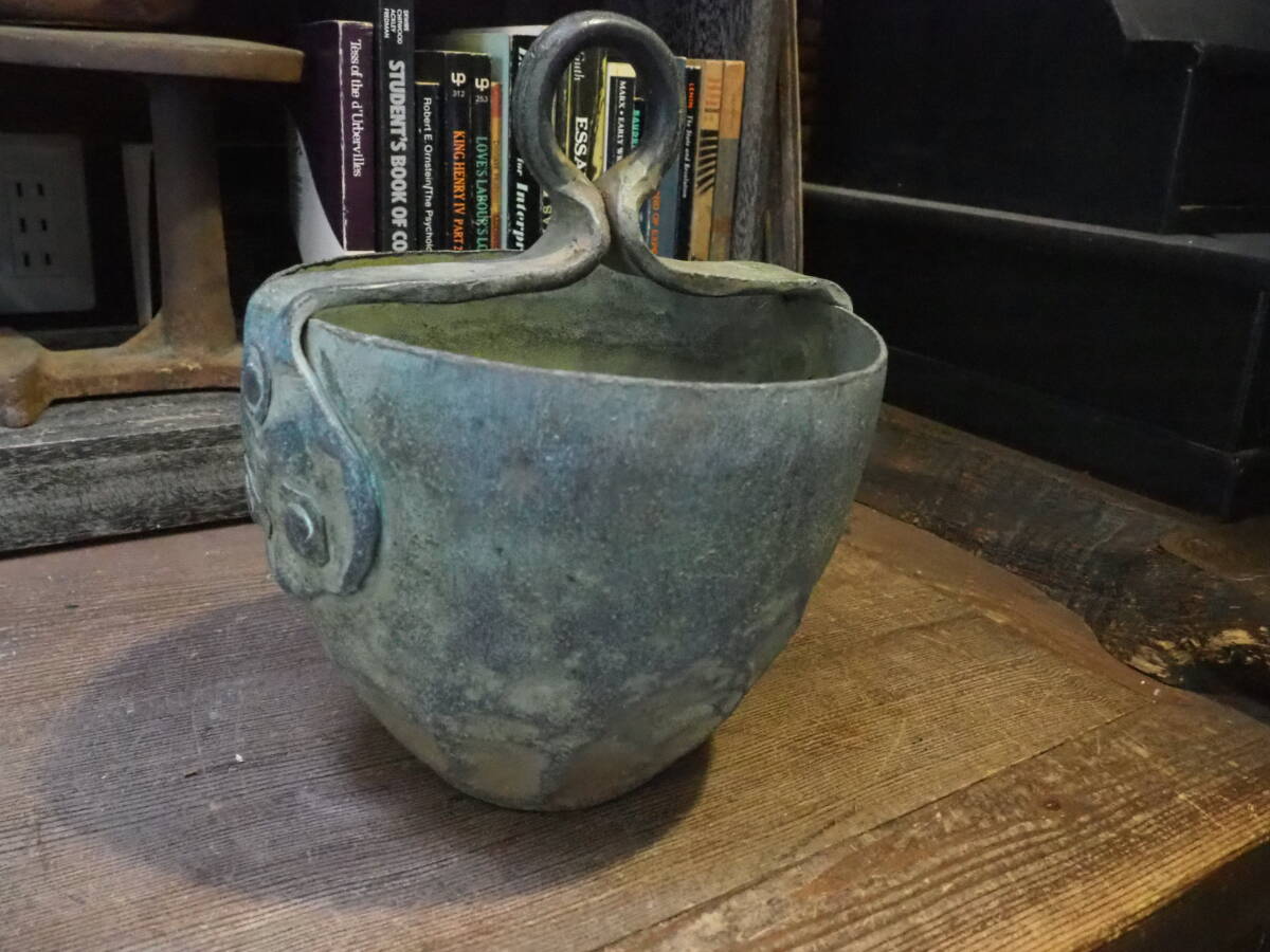 - 【インドアンティークアイアンバケツ】滑車ドライフラワー古道具ガーデニング鶴瓶骨董インテリア観葉植物インダストリアル鉄桶