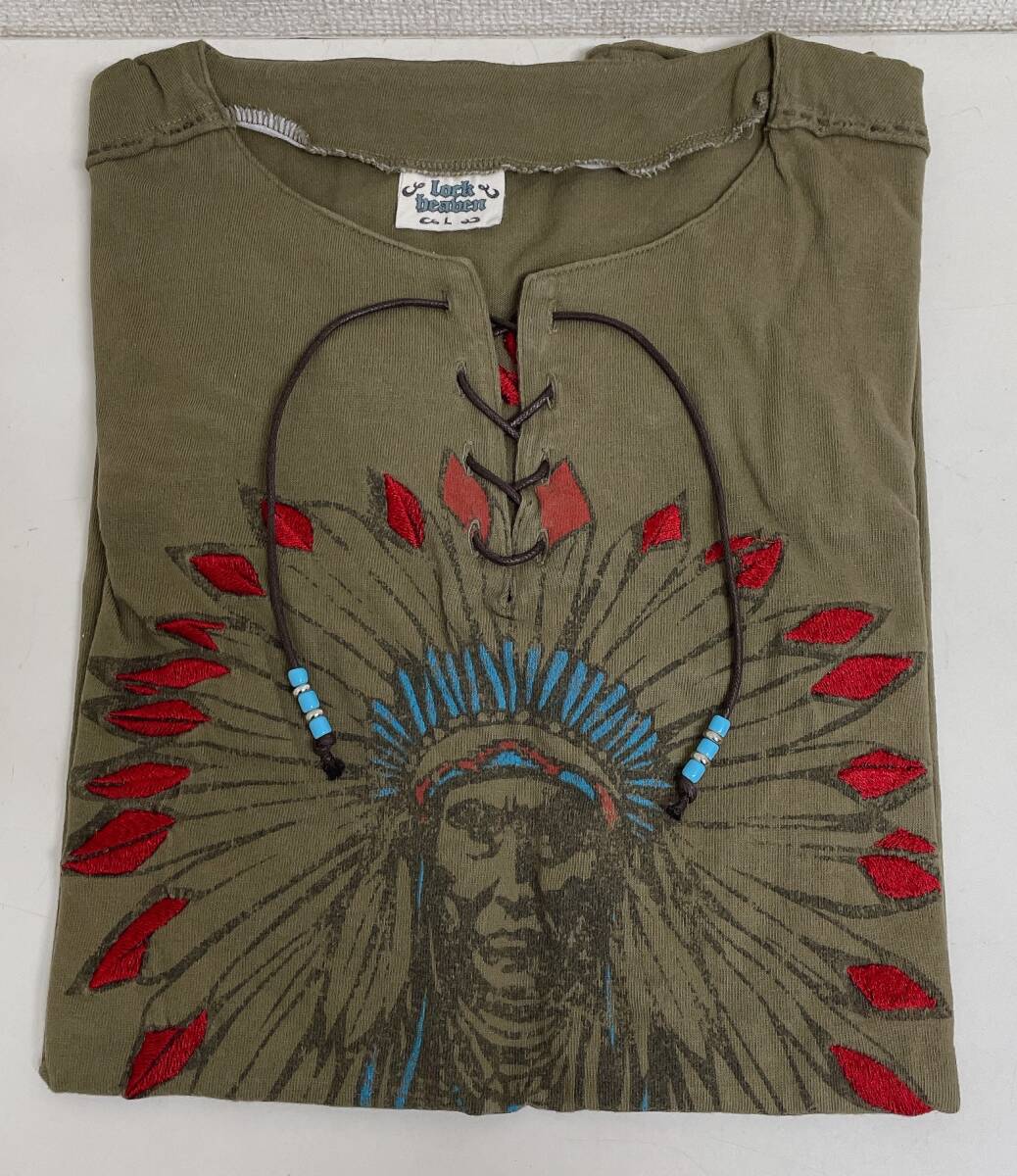 - 【Lock beaben】Lサイズ/カーキ/ヴィンテージ/コレクション/世界/古着/民族/A75-108
