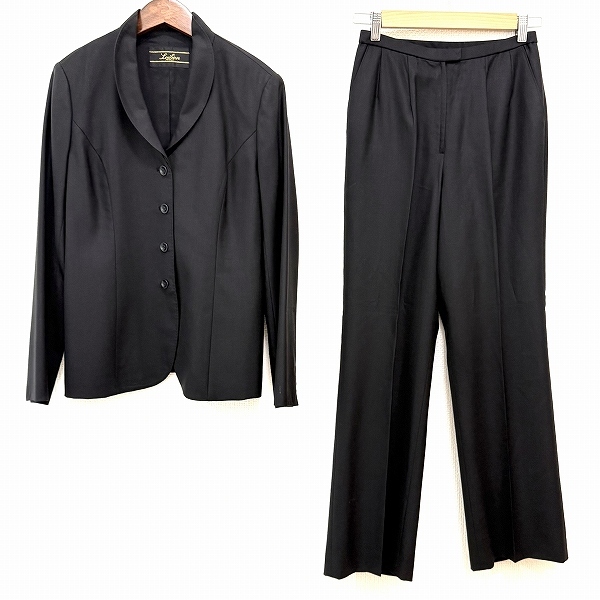 - #anc レリアン Leilian パンツスーツ 9 黒 セットアップ ツーピース センタープレス ルイジボット生地 シルク混 レディース [937757]