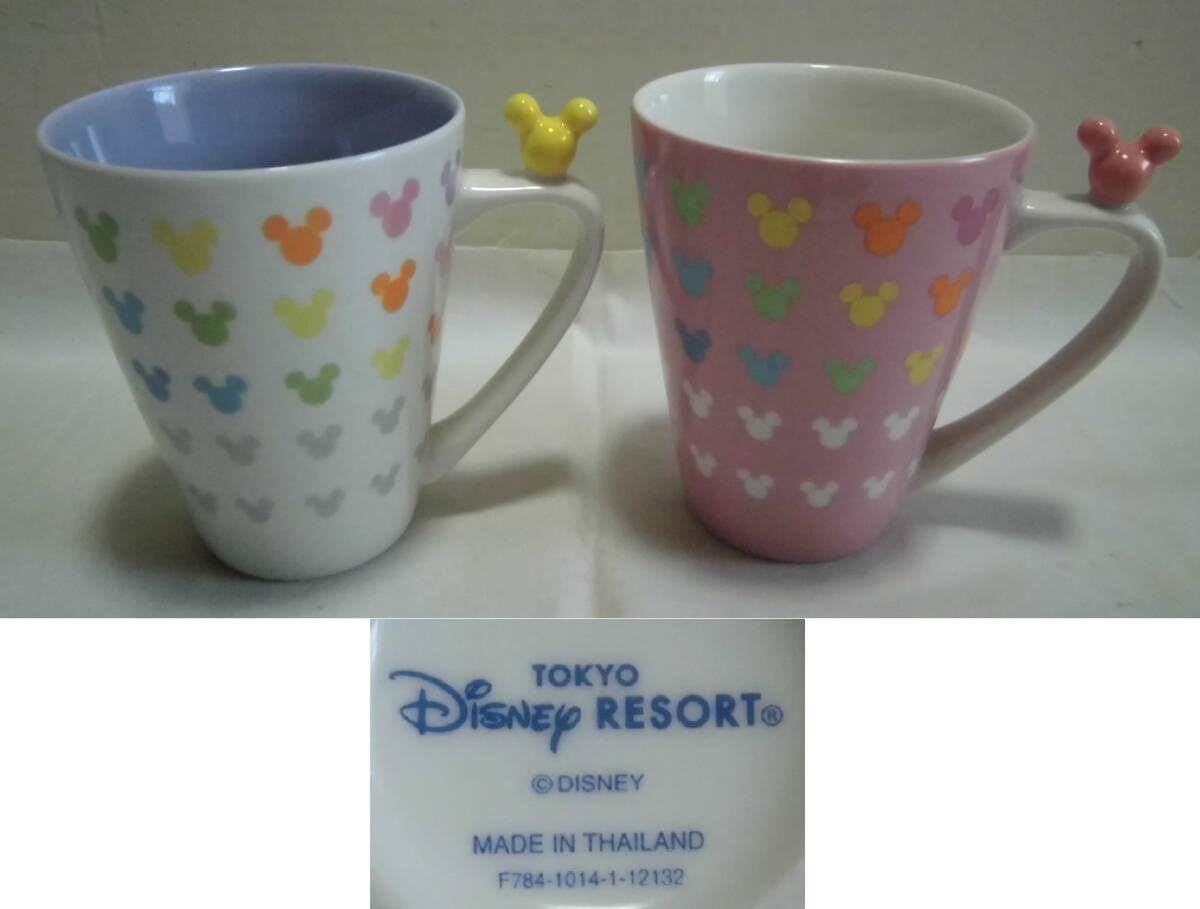 - マグカップ ペア 東京ディズニーリゾート ミッキーマウス 2客 白とピンク色 色絵 フリーカップ 茶器 陶器 工芸品 レトロ