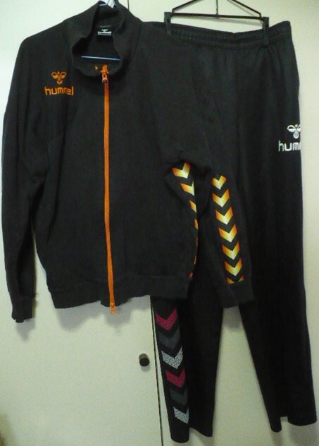 - 送料込み Hummel(ヒュンメル)製ジャージパンツ・フルジップジャケット等4点以上上下セット M~L 黒×グレー おまけ付き