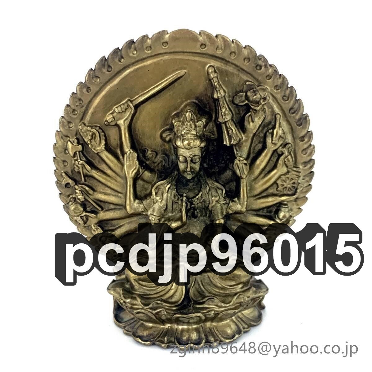 > 37g 黄銅 千手観音菩薩 子年 守護本尊 仏像 大国主命 仏教美術 密教 置物 豆仏像 座像 厄除け お守り 骨董 真鍮 銅製 金属
