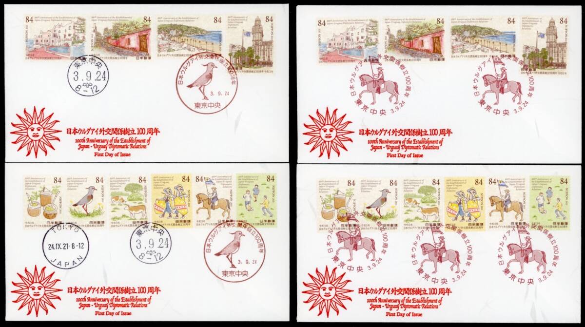 - 0832 【FDC】日本ウルグアイ外交関係樹立100周年[東京中央/令3.9.24/鳴美版](解説書なし)