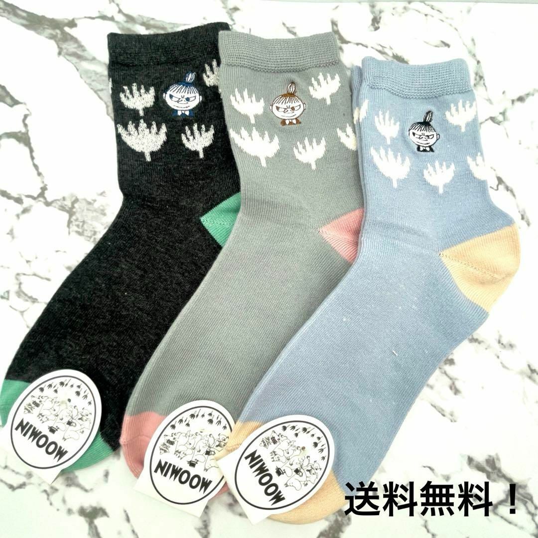 - 靴下 ムーミン ソックス リトルミィ 花 ミィ 刺繍 3足セット 新品未使用