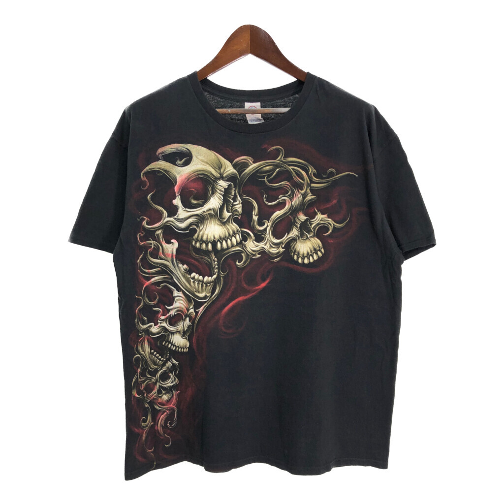 > DELTA スカル ガイコツ ドクロ Tシャツ Y2K ブラック(メンズ XL)中古 古着 U1427