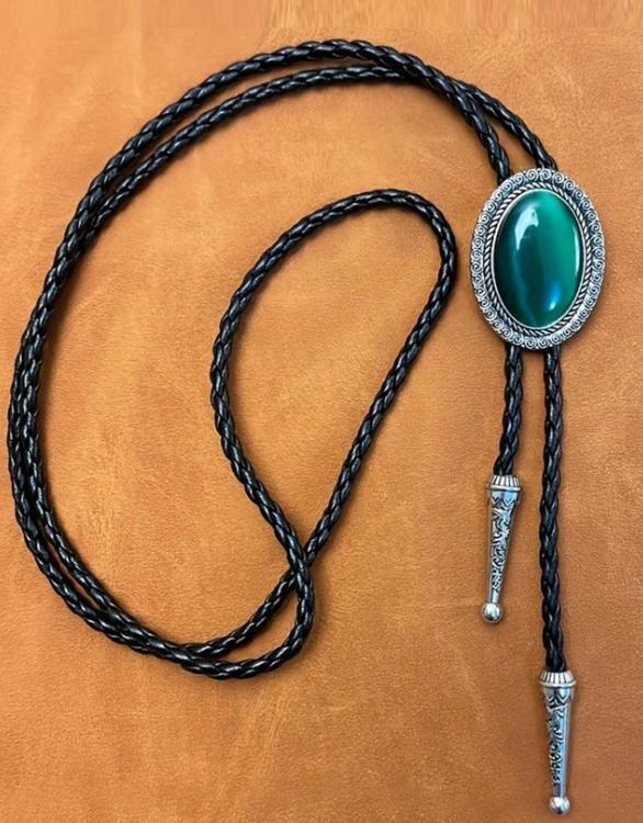 - 【ループタイ】深緑色キャッツアイ石 ボロタイ ストーン グリーン