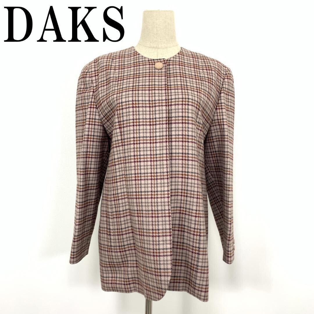 - LA5714 ダックス シルク ノーカラージャケット DAKS カジュアル チェック ポケット有ピンクベージュ 15