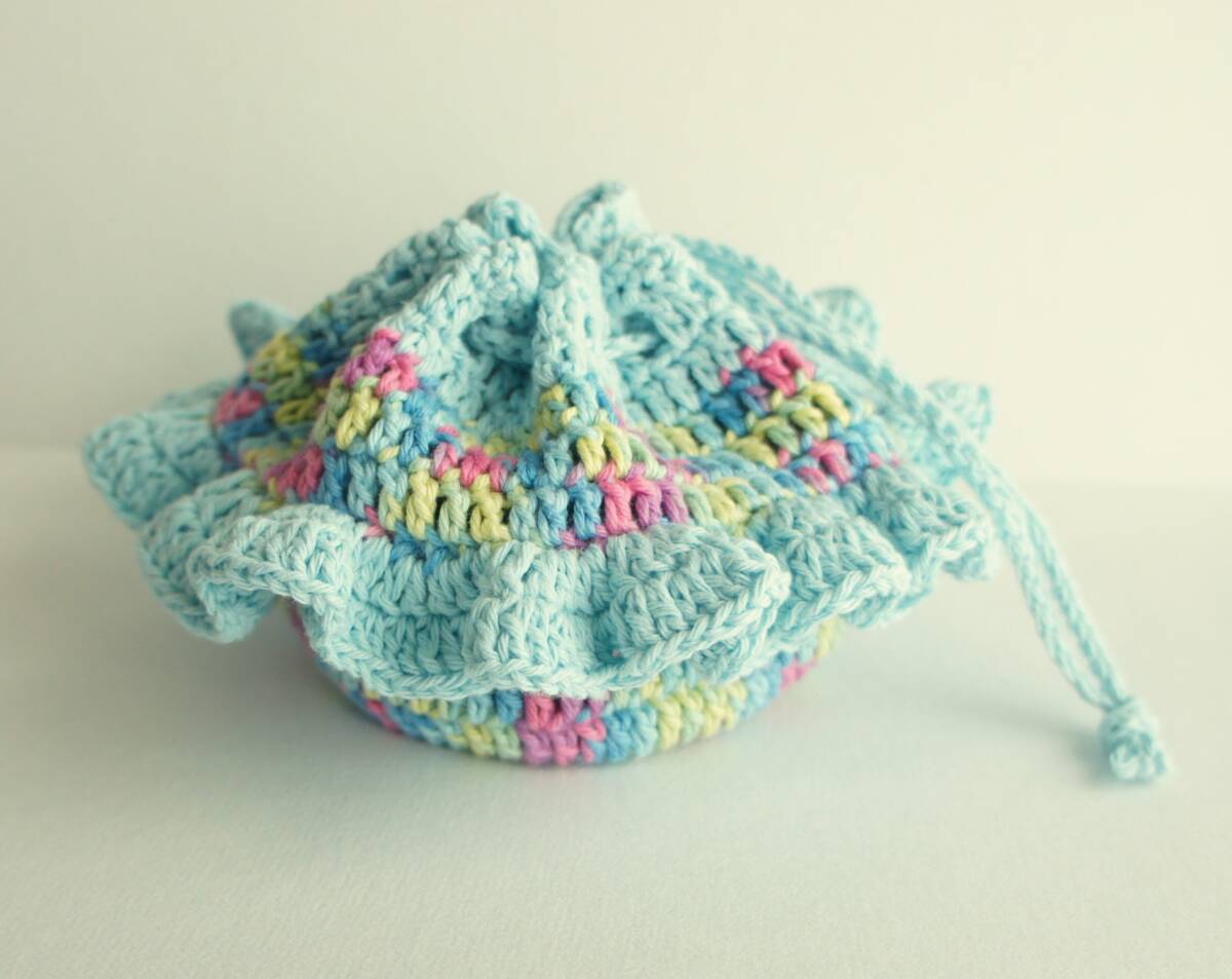- ♪ ハンドメイド 巾着 フリル かぎ針編み 手編み コットン