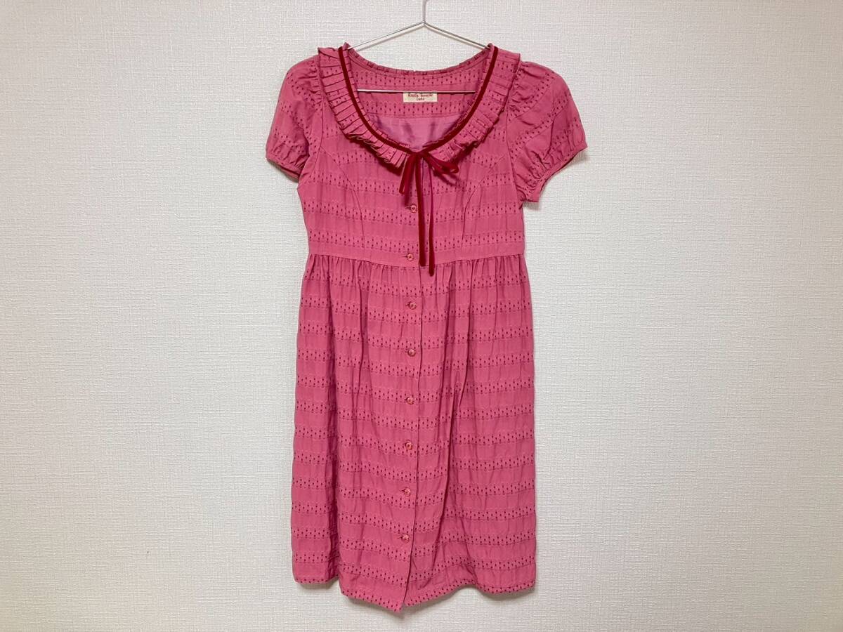 > Emily Temple cute エミリーテンプルキュート Aライン ワンピース ピンク ドット ボーダー 前あきワンピース
