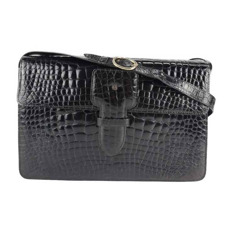 - LOEWE ロエベ クロコダイル 最高級品 上質 ショルダーバッグ クロコダイル 黒 ゴールド金具 エキゾチックレザ【本物保証】