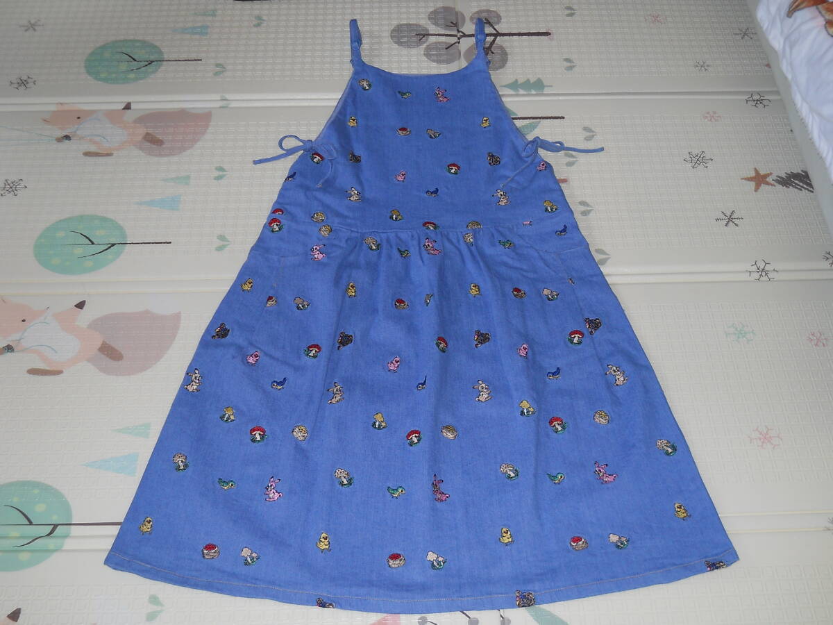- フランシュリッペ森の動物・果物・きのこ刺繍デニムジャンバースカート美品!