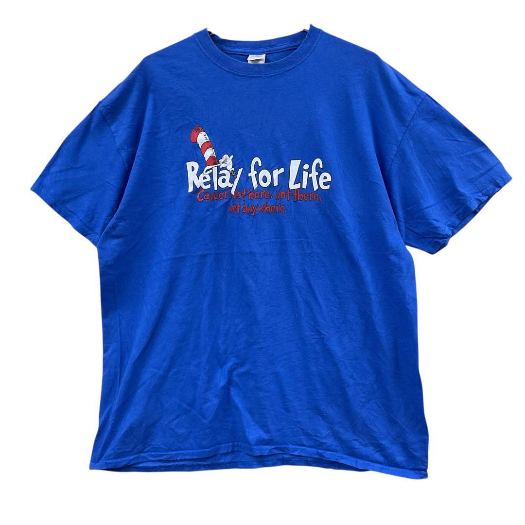- ギルダン メンズTシャツ 青 XL クリスマスプリント 夏 古着【3693】