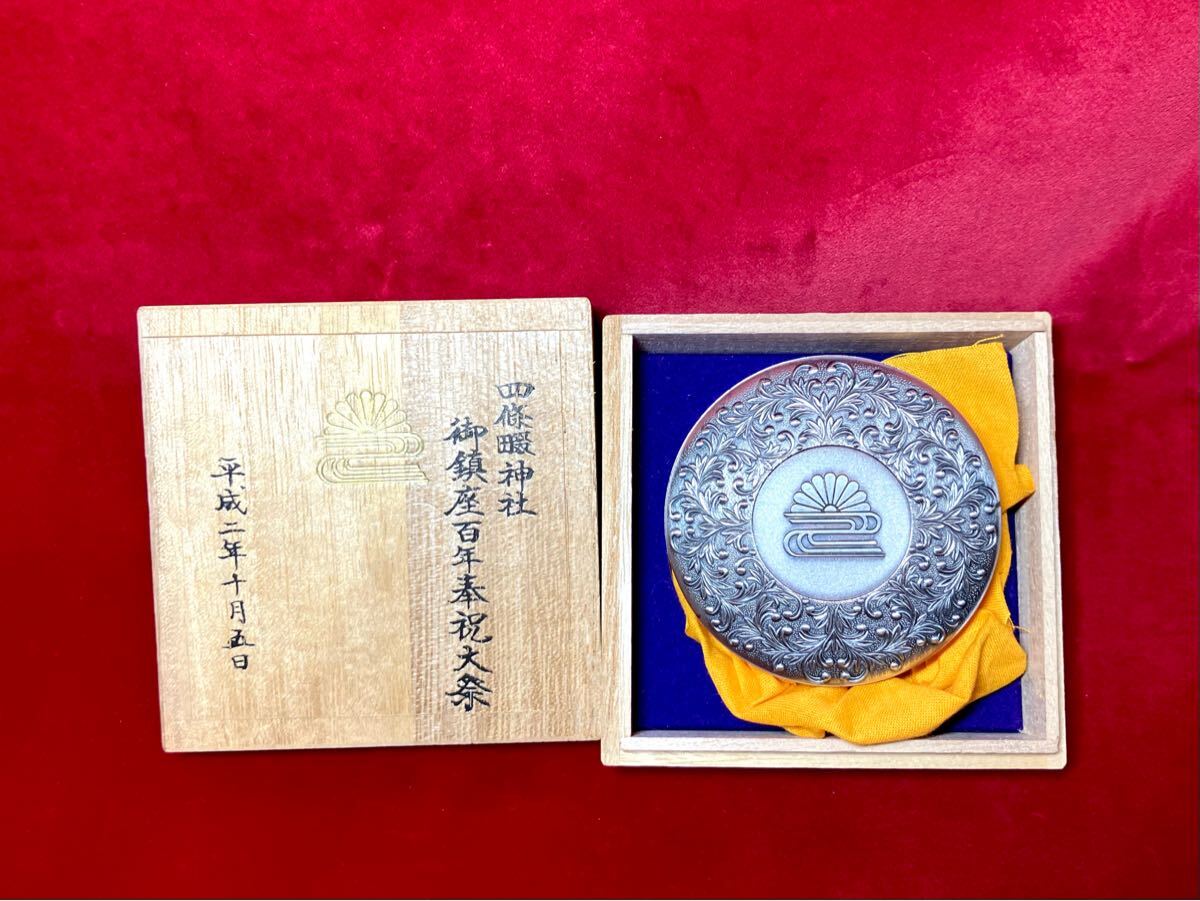 - 骨董 四條畷神社 御鎮座百年奉祝大祭 錫製 朱肉入 朱肉 ほぼ未使用品 ハンコ 判子 書道具