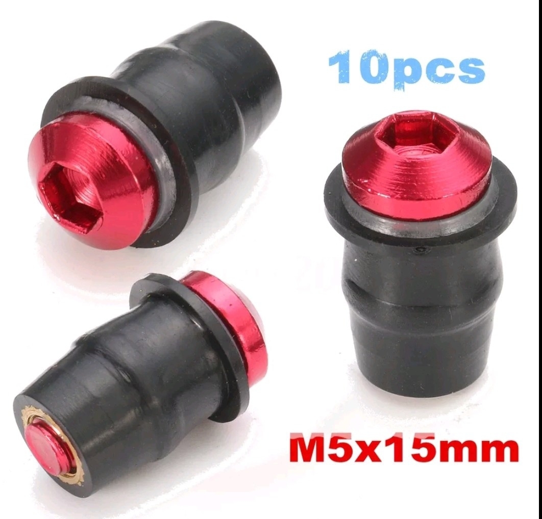 > カウリング ボルト M5 5mm×15mm ネジ ナイロン ワッシャー ウェルナット スクリーン シールド カウル 10本セット カウルボルト レッド