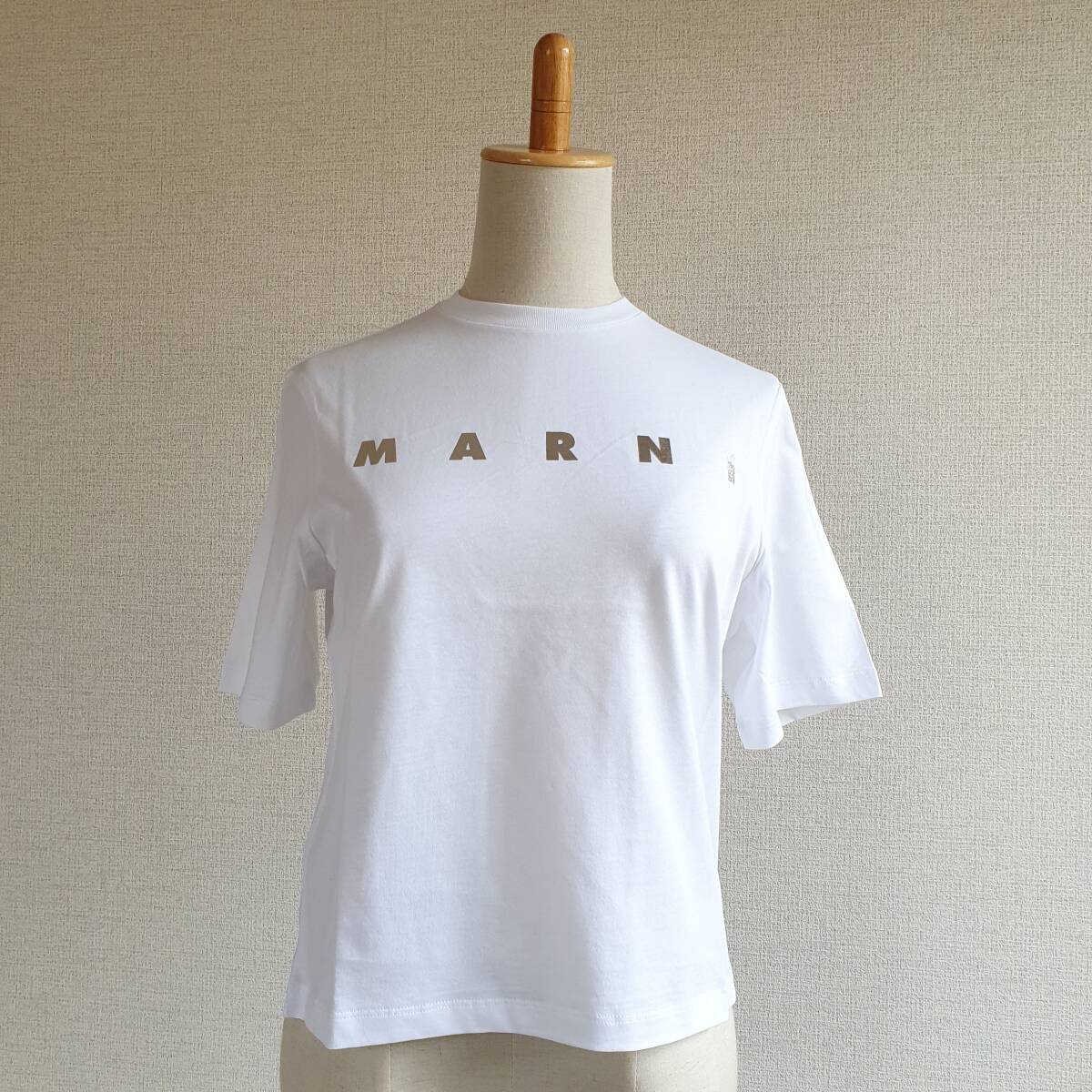 - 【新品・未使用】MARNI KIDSメタリックロゴクロップドTシャツ 白 14Y M01317M00HZ