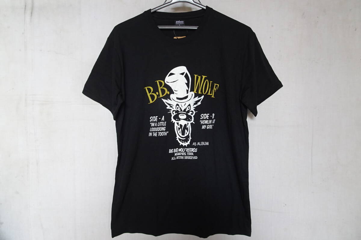 > EDWIN/エドウィン/DISNEY/半袖Tシャツ/フロントプリント/B.B.WOLF/黒/ブラック/Lサイズ/タグ付(5/15R7)