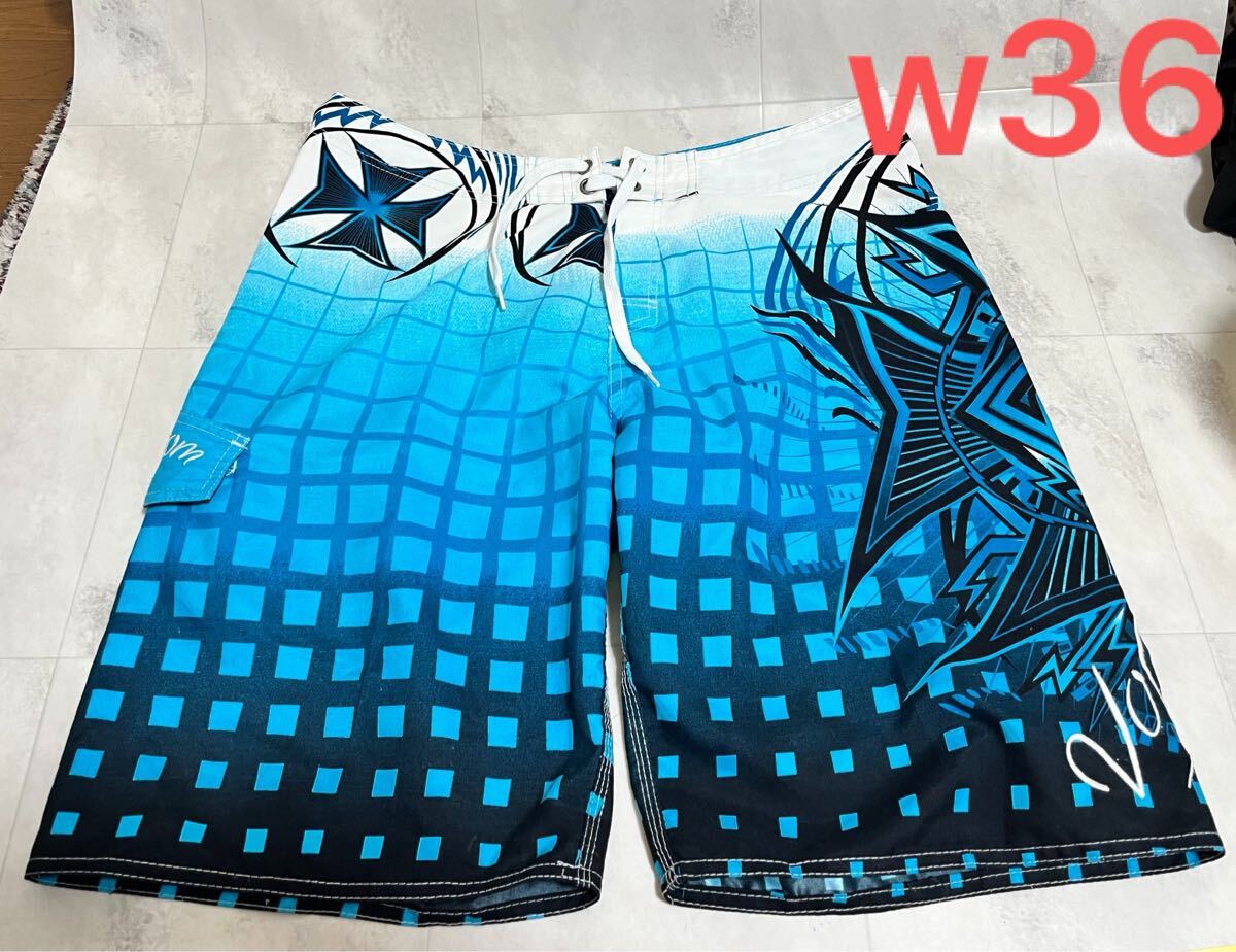 - ホームクリーニング済み VOLCOM ボルコム サーフパンツ サイズ36 大きいサイズ ブルー系
