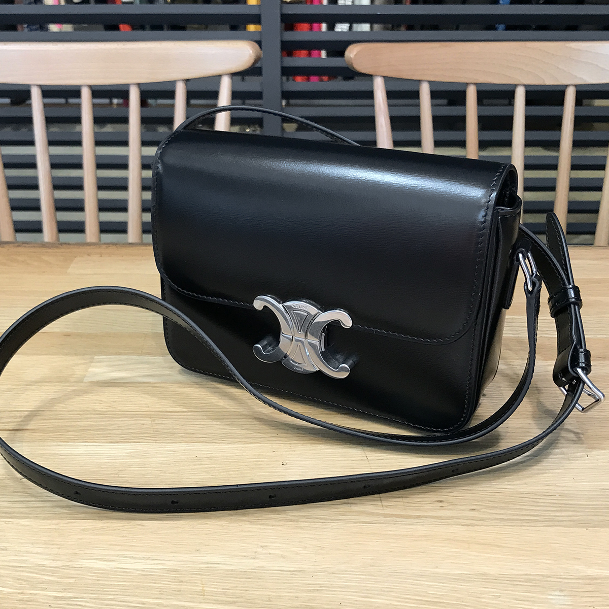 - 【新品同様】セリーヌ ティーントリオンフ ショルダーバッグ シャイニーカーフスキン ブラック シルバー金具 188423 フラップ 13961