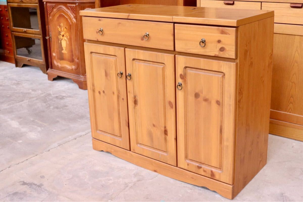 - GMHN364○カントリー調 パイン キャビネット サイドボード 作業台 リビングボード 収納 木製 チェスト