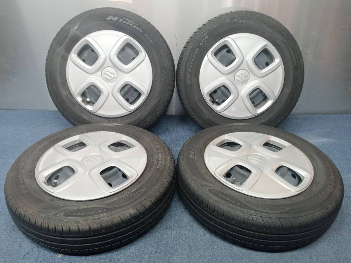 > ★8-9分山★21年製★ ROADSTONE N blue eco 145/80R13 スズキ純正スチールホイール 13×4J 4H-100 4本セット B718