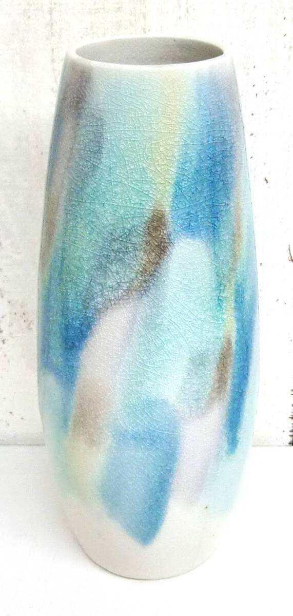 - *伝統工芸 工芸品 工芸美術 *美濃焼 庫山造 三彩花器 ヒビ割れ模様 *花瓶 花入 花生 フラワーベース 飾り壺*丸井今井創業百年記念品