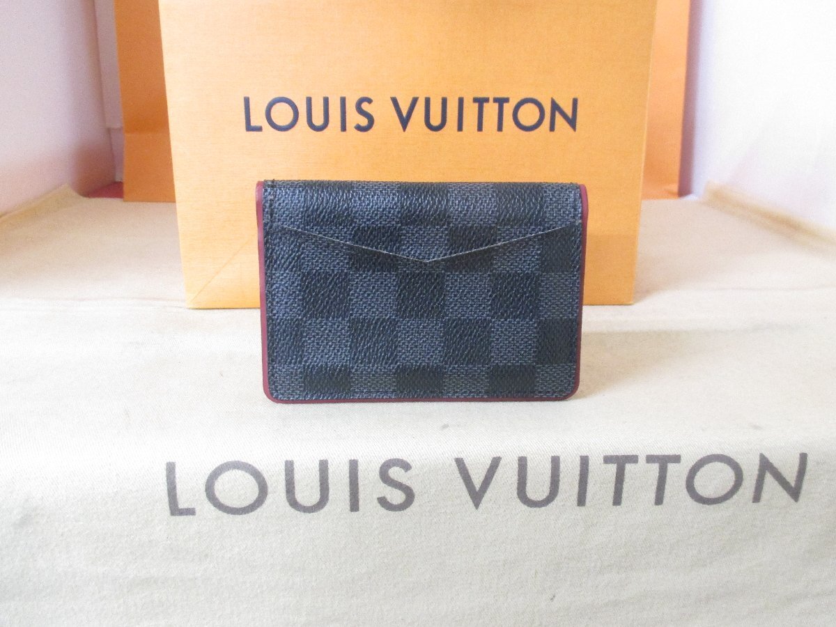 > 本物保証【即決で送料無料】ダミエ/グラフィットXレザー/カードケース/名刺入れ/オーガナイザー/バイカラー/ヴィトンの正規品