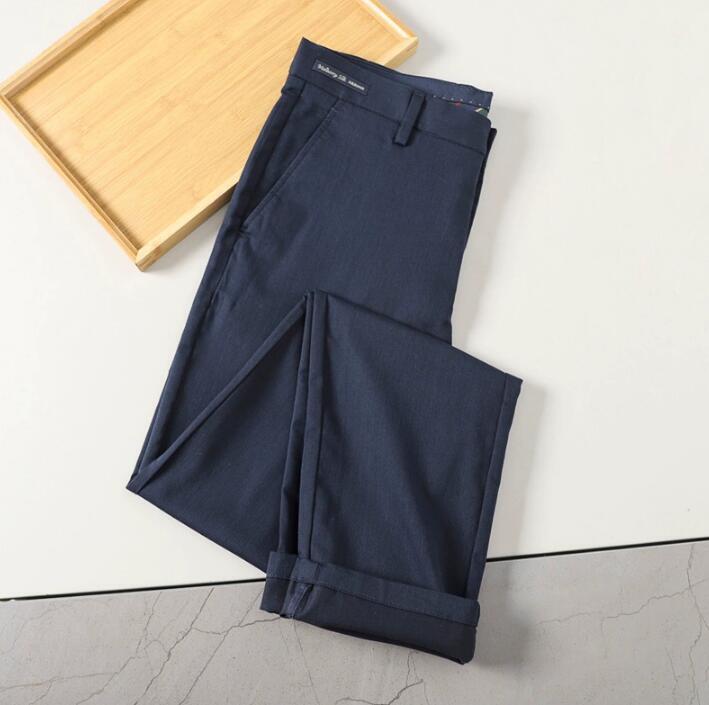 - 新作上質高級シルク混メンズ スラックス 柔らかくて滑らか 春夏 ロングパンツ ビジネス ボトムパンツ紺色サイズ選択可